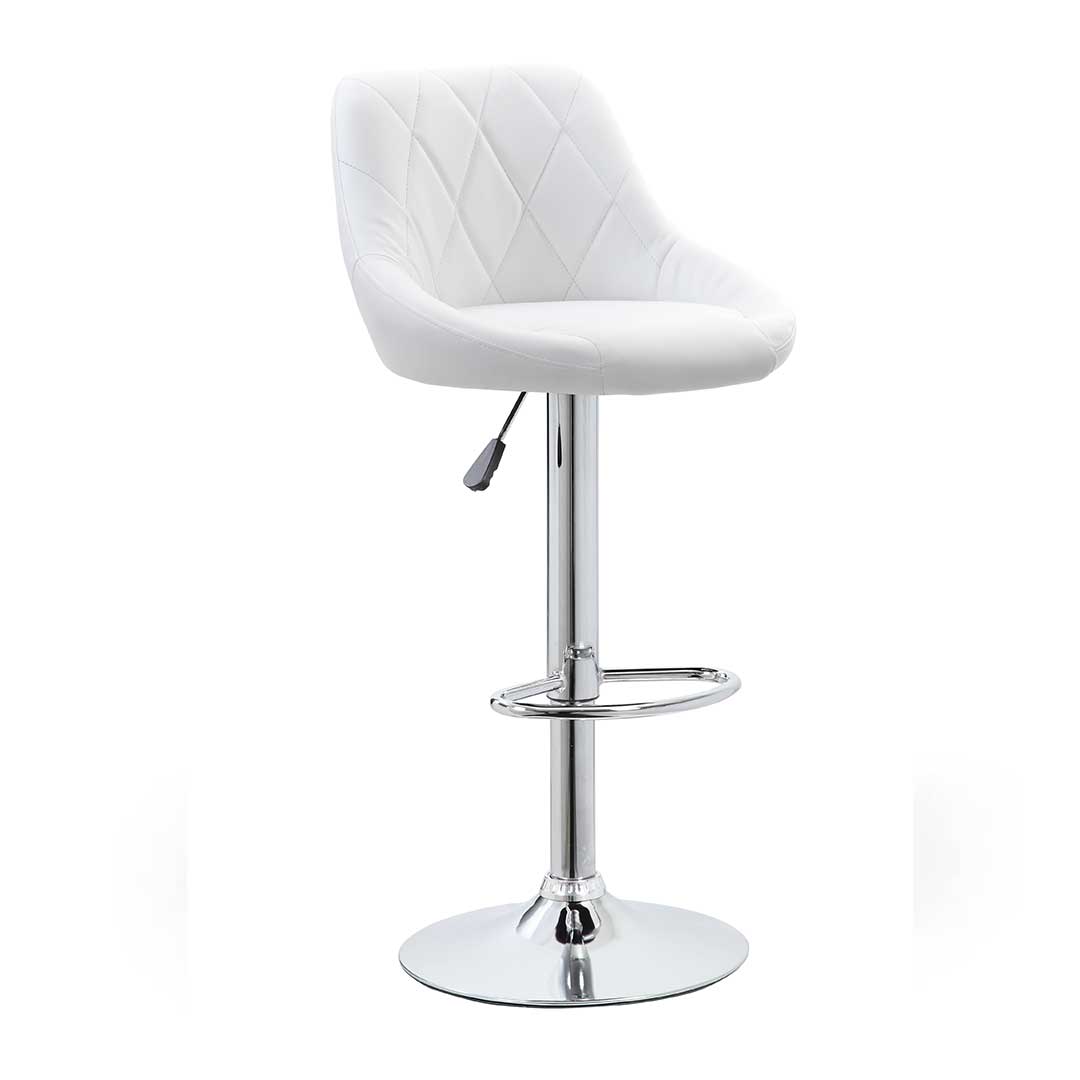 Barska stolica modernog i savremenog dizajna svakom enterijeru daće poseban izgled. Stolica je hromirane metalne konstrukcije , sa gasnim mehanizmom za podizanje i spuštanje . Sedište je od eko-kože u beloj boji.
