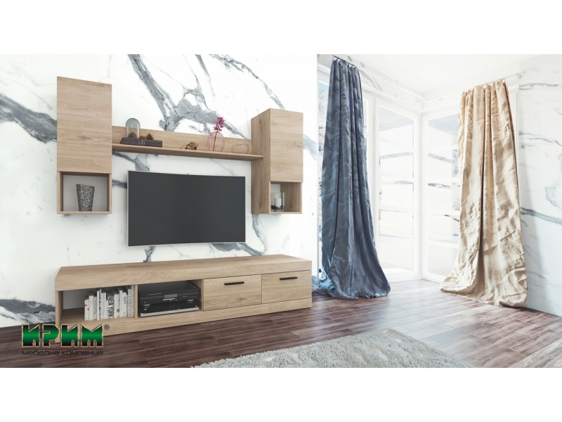 Dnevna Soba Sonoma Arven se sastoji od dva modula: donji modul visine 410 mm, idealan za smeštaj manjih uređaja i sitnog nameštaja, i gornji modul visine 900 mm, koji pruža dodatni prostor za dekoraciju, knjige ili uređaje. Prostor za TV, dimenzija 1300 mm širine i 750 mm visine, nudi dovoljno mesta za televizore i opremu, čineći ovu sekciju centralnim delom vaše dnevne sobe.