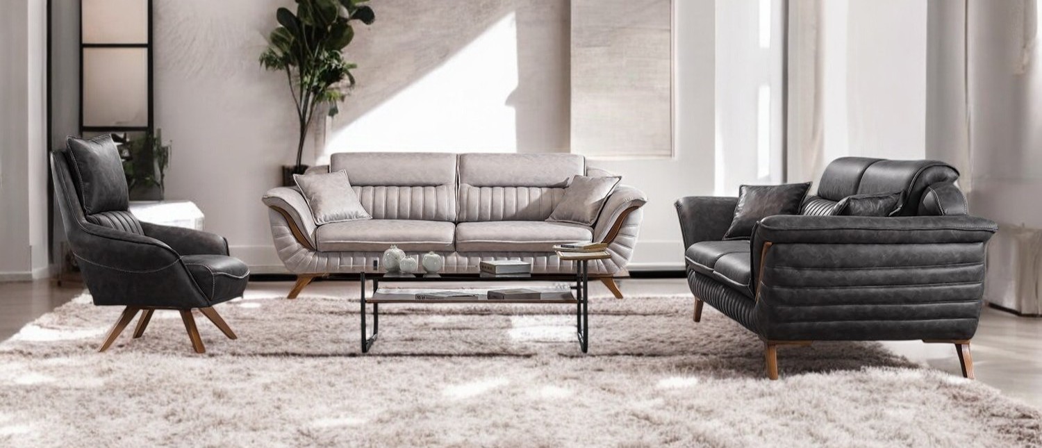 Garnitura Alex spaja udobnost, stil i kvalitet u savršenom balansu. Njen savremeni izgled, istaknut kombinacijom svetlih i tamnih tonova, unosi sofisticiranost i karakter u svaki prostor.