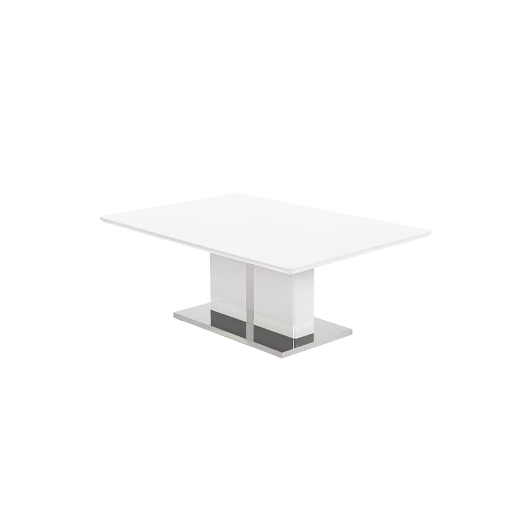 Model klub stola modernog dizajna i sa veoma specifičnim postoljem , izrađen od medijapana u beloj boji sa visokim sjajem.