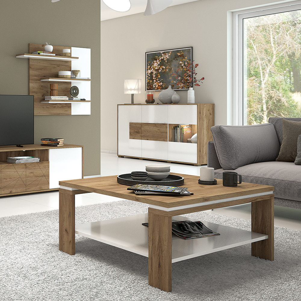 • ploča stola je u drvo-dekoru Tobacco hrast sa aplikacijom kristalno bele boje u visokom sjaju<