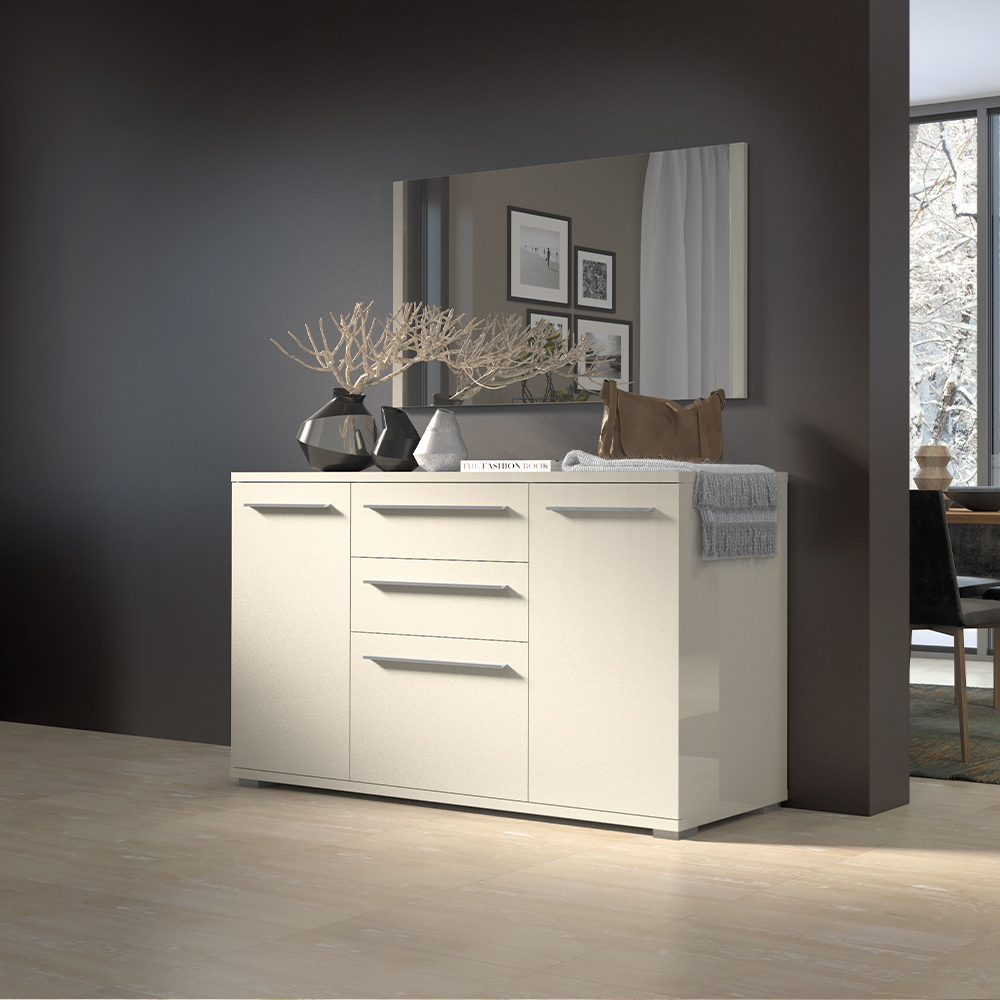 Funkcionalna komoda iz kolekcije nameštaja PIANO sa tri puna krila I jednom fiokom, dizajnirane geometrijske forme.