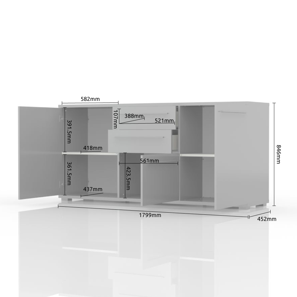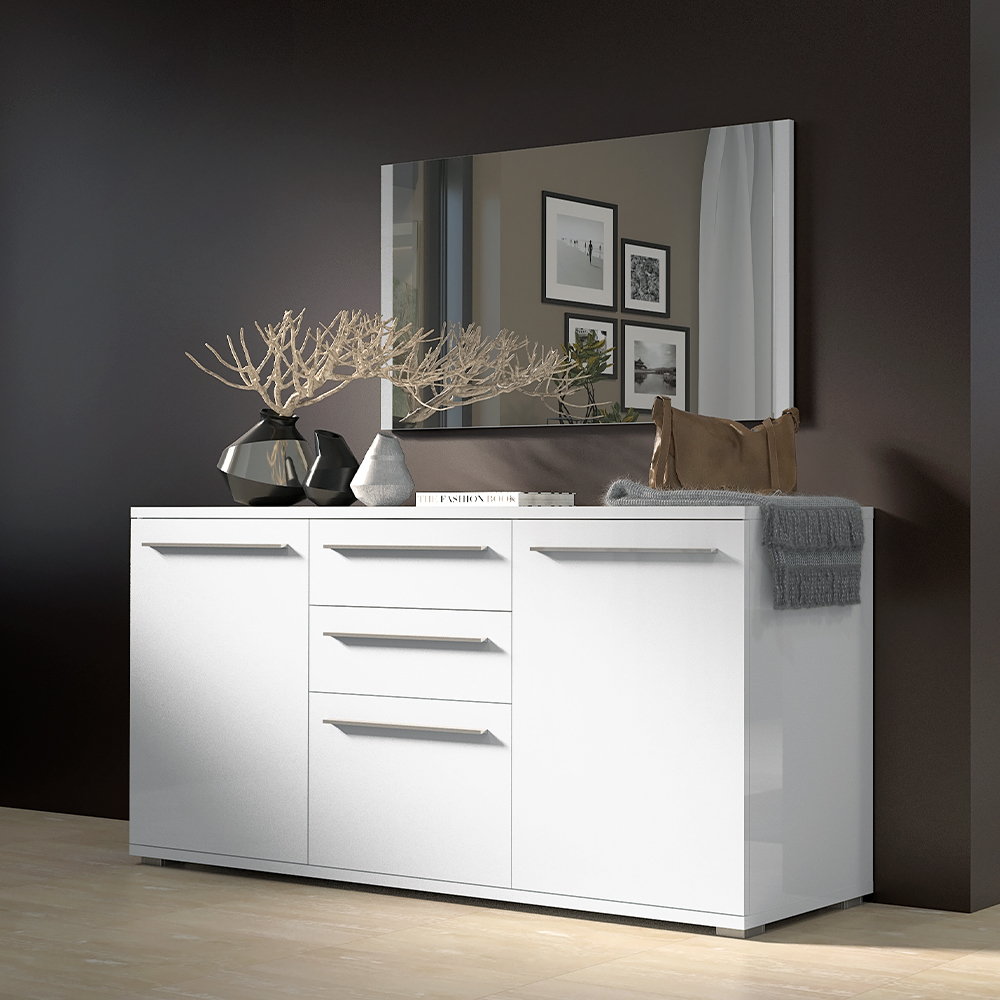 Funkcionalna komoda iz kolekcije nameštaja PIANO sa tri puna krila I dve fioke, dizajnirane geometrijske forme.