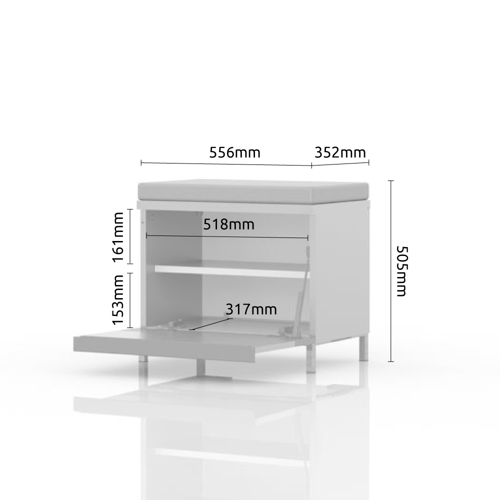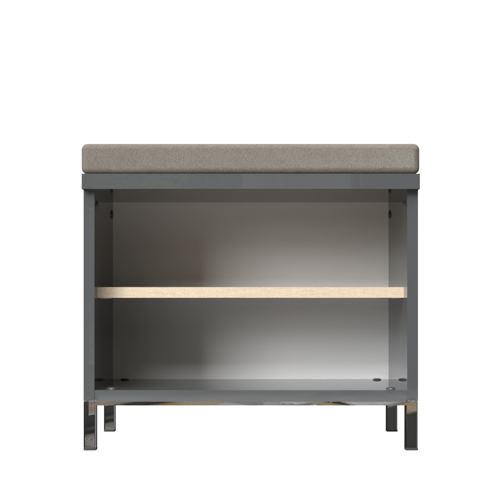 Komoda sa jednim krilom i tapaciranim jastukom za sedenje.