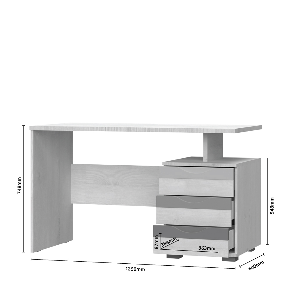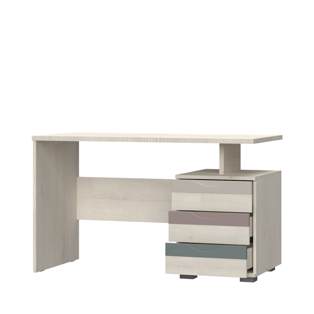 Kompjuter sto za dečiju sobu, iz kolekcije JOY, sa tri fioke koje poseduju ručice od medijapana u veselim bojama.