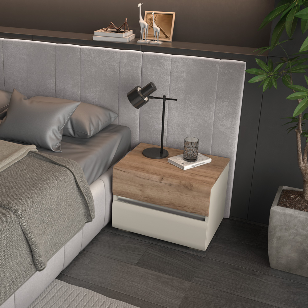 Noćni stočić za spavaću sobu, iz kolekcije INVICTUS, sa dve fioke skladne i meke forme frontova.