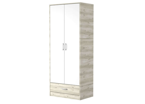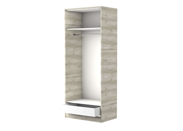 ORMAR KAPRI 2K1F“ predstavlja modernu i funkcionalnu jedinicu za odlaganje koja se sastoji od dva dela: samostojeće police sa otvorenim policama i fiokom u svetlom drvenom finišu, i elegantnog ormara sa ogledalima na vratima i dodatnom fijokom ispod. Ovaj komad nameštaja idealan je za organizovanje knjiga, ukrasa, odeće i posteljine, nudeći kombinaciju otvorenog i zatvorenog prostora. Neutralne boje i jednostavan dizajn omogućavaju da se lako uklopi u razne stilove enterijera.