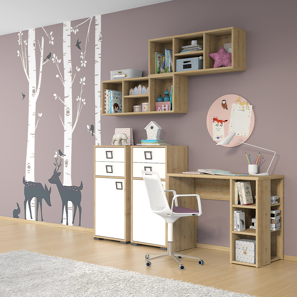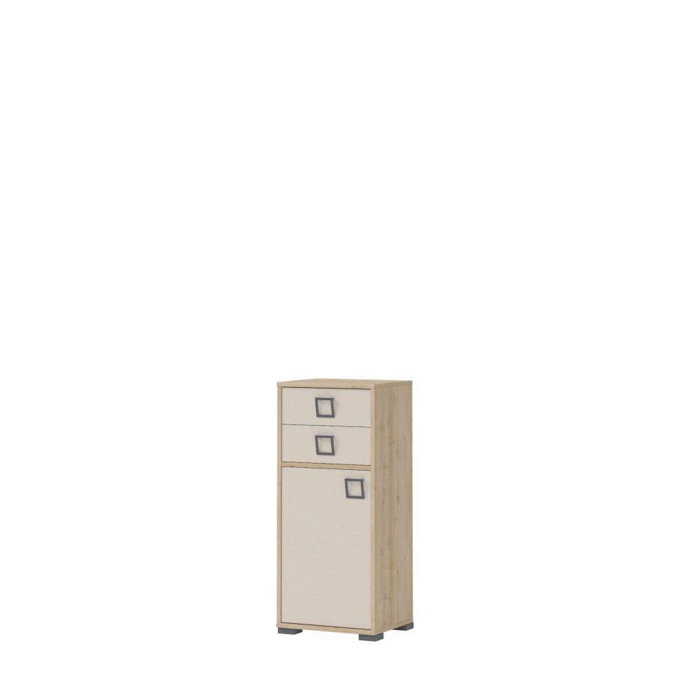 Ormarić za dečiju sobu, sa jednim krilom i dve fioke, iz kolekcije KIKI. Element je moguće montirati prema vašim potrebama. Nameštaj koji se svojim kvalitetom i funkcionalnošću u potpunosti izdvaja od ostalih na tržištu
