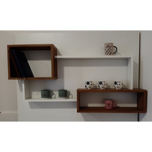 Polica Sara je moderna zidna polica jednostavnog i elegantnog dizajna, idealna za dnevni boravak, kuhinju, trpezariju ili kancelariju. Kombinacija bele boje i dekor drveta daje prostoru toplinu i savremen izgled. Sastoji se od otvorenih horizontalnih polica i dekorativnih kubus elemenata koji omogućavaju praktično odlaganje i dekorisanje.