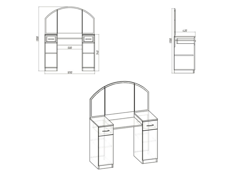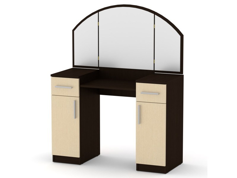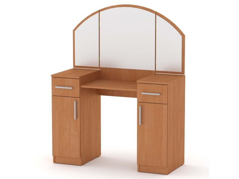 Dizajn toaletnog stola je osmišljen sa posebnom pažnjom. Sadrži jedan visoki ormarić sa vratima i fiokom sa svake strane ogledala, što omogućava organizaciju ličnih stvari i toaletnih potrepština. Prostrana površina stola je idealna za postavljanje parfema, kutija za nakit i kozmetičkih proizvoda.