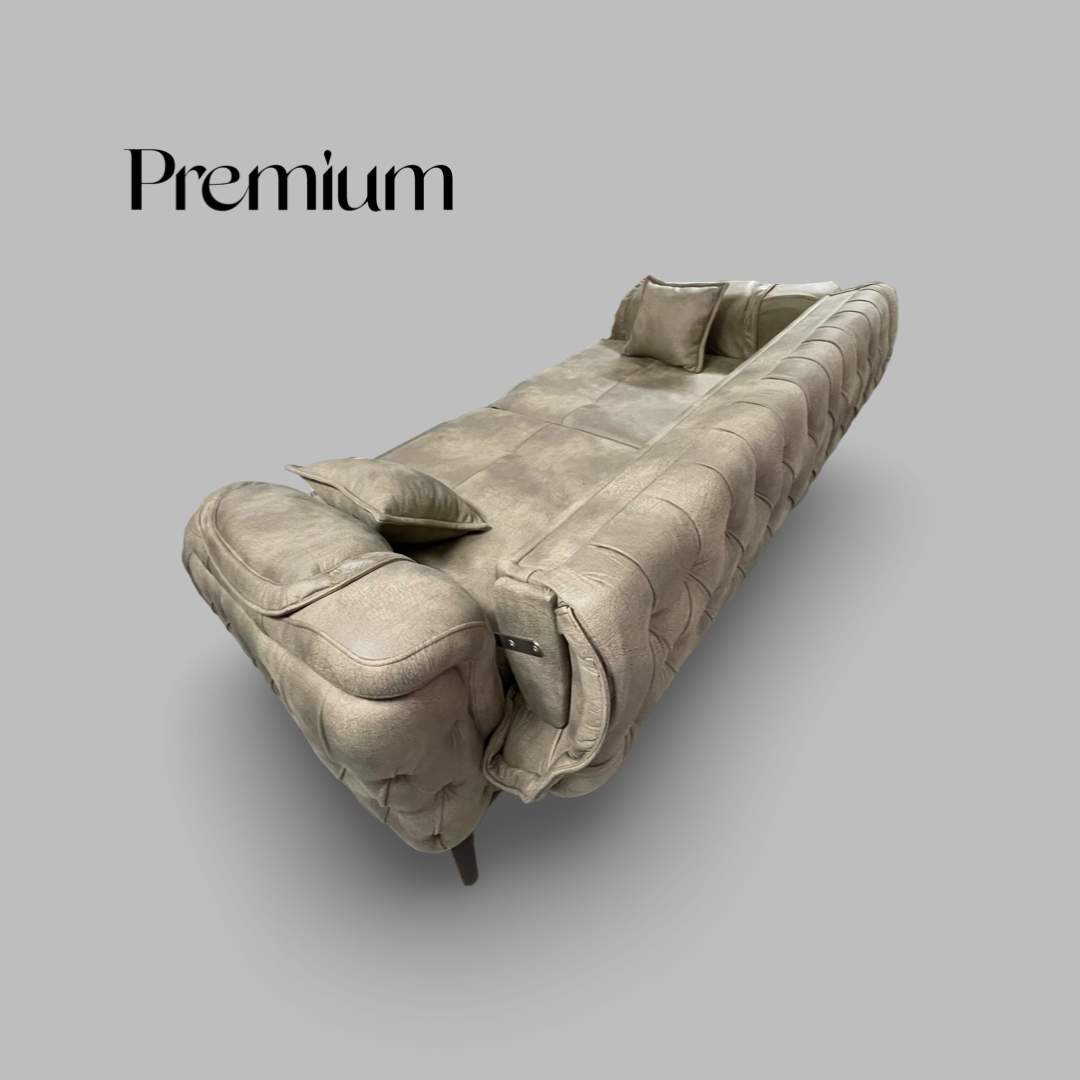 Garnitura Premium TTF je veoma moderna, poseduje futuristicki i elegantan dizajn. Ova garnitura će transformisati vaš prostor da odiše elegancijom, a u isto vreme prati moderne linije u dizajnu. Ova garnitura se sastoji od dva troseda i fotelje.