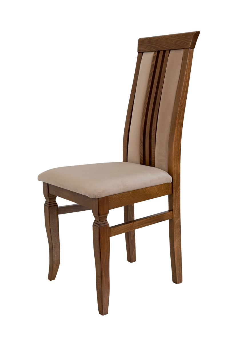 Dizajn naslona koji kombinuje simetrično tapacirana dva dela naslona sa paralelnim prorezima na sredini pruža jedinstven spoj praktičnosti i estetike. Ukrasni detalji na prednjim nogarama upotpunjuju zanimljiv izgled cele stolice.