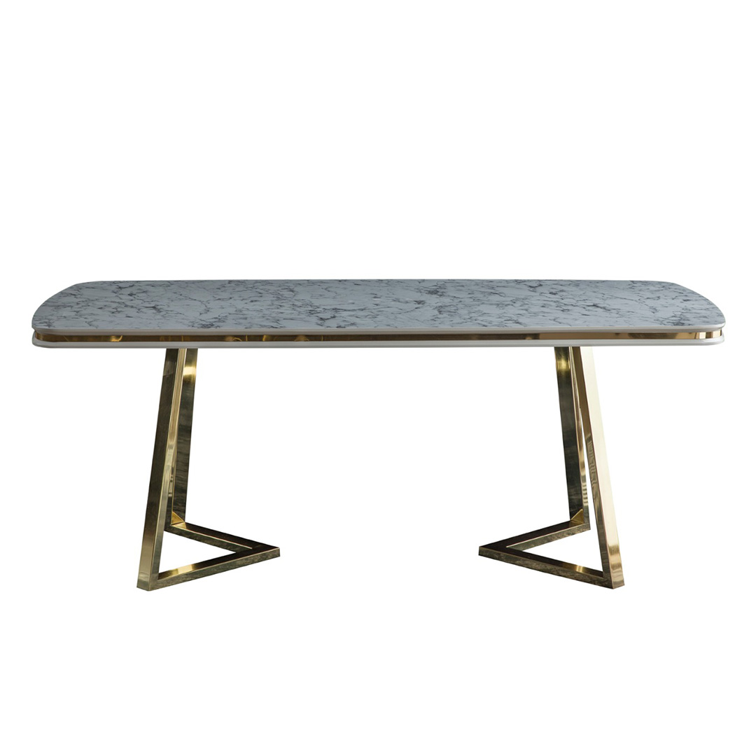 Model trpezarijskog stola Berlin je jedinstven prema svojoj ploči u dezenu mermera . Nogice stola su hromirane.