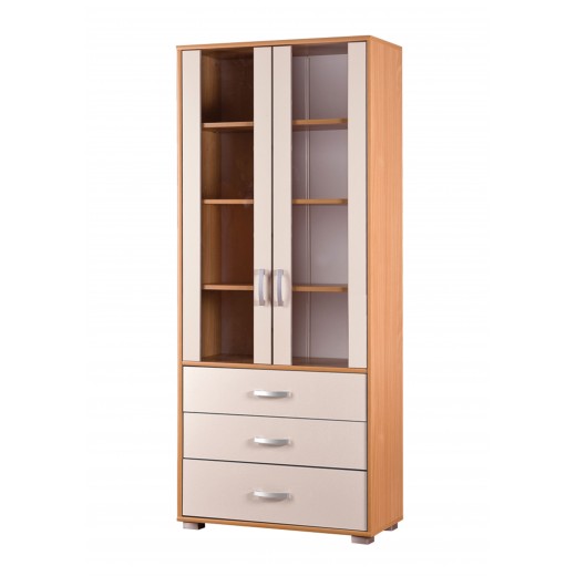 Elegantna i funkcionalna vitrina  savršeno se uklapa u savremene i klasične enterijere. Kombinacija toplog dekora drveta i svetlih frontova daje prostoru osećaj topline i urednosti, dok staklena vrata omogućavaju pregledno izlaganje predmeta.